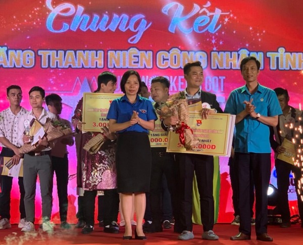 Ban Tổ chức trao giải Nhất tại Cuộc thi Tìm kiếm tài năng thanh niên công nhân