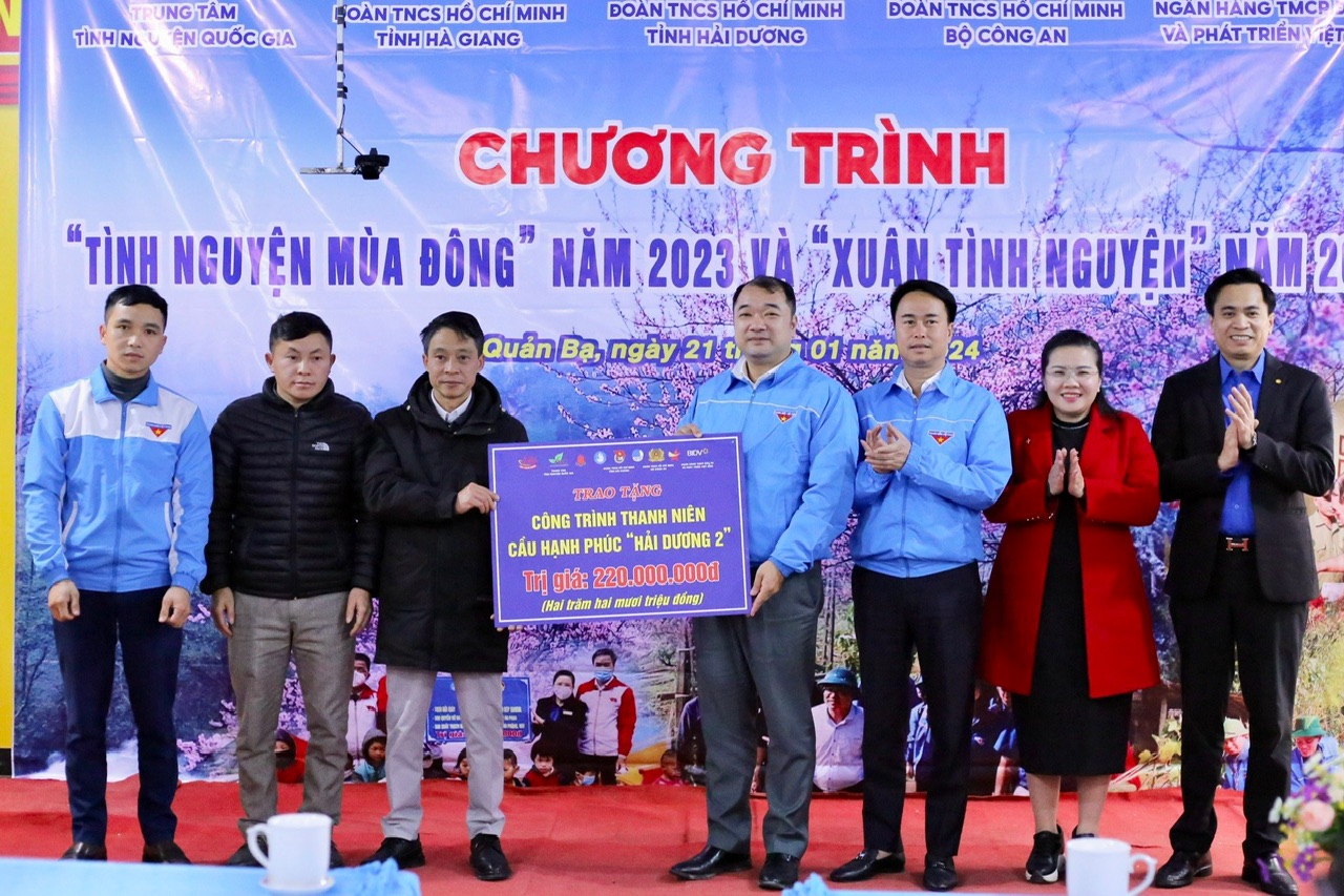 Tại chương trình, Đoàn công tác đã trao 80 suất quà cho các em học sinh khó khăn của các trường mầm non, tiểu học và THCS xã Quyết Tiến (huyện Quản Bạ, Hà Giang), mỗi suất quà trị giá 800.000 đồng; khởi công xây công trình thanh niên "Cầu hạnh phúc Hải Dương II” trị giá 220 triệu đồng, điểm vui chơi cho thiếu nhi của Trường Mầm non Quyết Tiến trị giá 30 triệu đồng.
