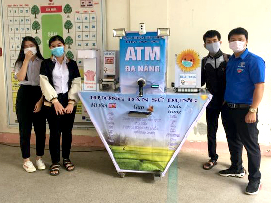 Sản phẩm độc đáo của 2 nữ sinh lớp 12C được gọi là ATM “4 trong 1” cùng lúc có thể sát khuẩn tay, cung cấp khẩu trang giúp phòng chống dịch hiệu quả và hỗ trợ người nghèo nhu yếu phẩm như gạo, mì tôm. Sản phẩm ứng dụng công nghệ không tiếp xúc thông qua các cảm biến quang, đã được đưa vào sử dụng tại Trường THPT Trần Quốc Tuấn, thành phố Quảng Ngãi.