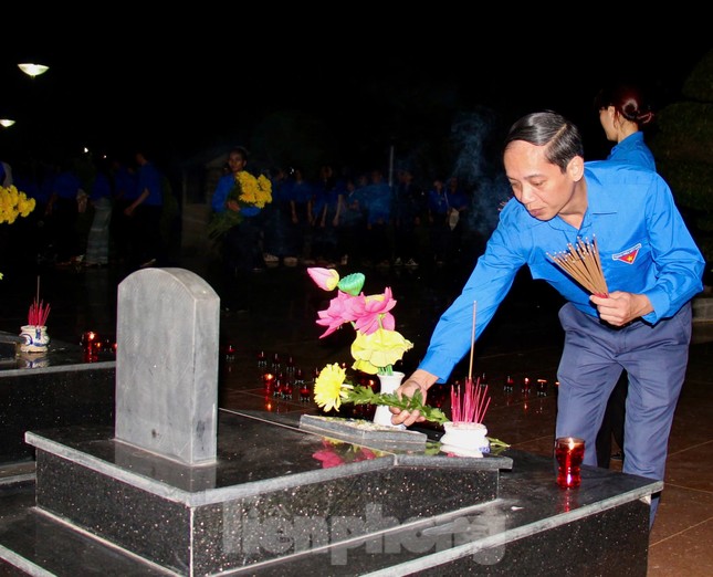 Đồng chí Nguyễn Thanh Tùng, Phó Bí thư Đảng ủy Trung ương Đoàn và các đại biểu, đoàn viên thanh niên dâng nén tâm hương và thắp lên ngọn nến ở tất cả các phần mộ liệt sĩ để khắc ghi công lao, bày tỏ lòng thành kính, biết ơn với những hy sinh cao đẹp của những người anh hùng đã ngã xuống vì sự nghiệp giải phóng dân tộc.
