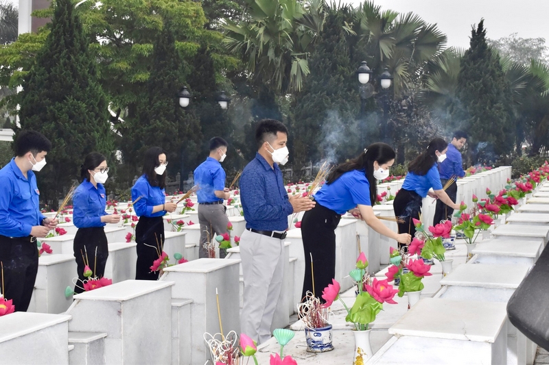 Tại nghĩa trang Quốc gia Vị Xuyên, huyện Vị Xuyên, tỉnh Hà Giang, nơi quy tụ 1.851 phần mộ liệt sỹ (trong đó có 145 phần mộ liệt sỹ người Tuyên Quang) và 1 mộ liệt sỹ tập thể đã hy sinh trong cuộc chiến tranh bảo vệ biên giới phía Bắc của Tổ quốc, Đoàn đã tổ chức dâng hương, hoa bày tỏ lòng thành kính và tri ân sâu sắc đối với các Anh hùng liệt sỹ đã hiến dâng tuổi thanh xuân và xương máu để bảo vệ nền độc lập tự do của đất nước. Sau phút tưởng niệm, các thành viên trong đoàn đã viếng, thắp hương phần mộ các Anh hùng liệt sỹ.