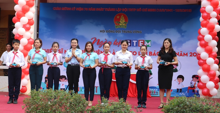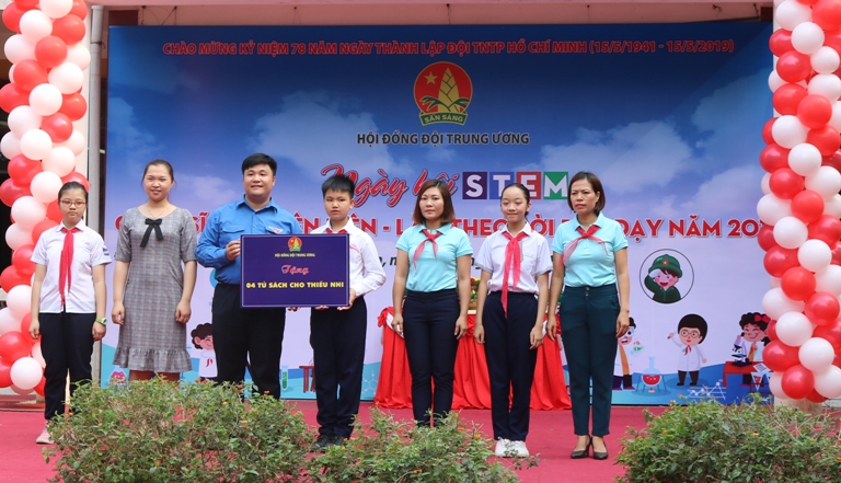 Trao tặng tủ sách Kim Đồng và Robot cho học sinh các liên đội tham gia