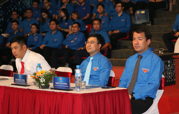 Đồng chí Ngô Văn Cương, Bí thư Trung ương Đoàn, Chủ nhiệm Uỷ ban Kiểm tra Trung ương Đoàn (áo xanh bên phải) tham dự chương trình