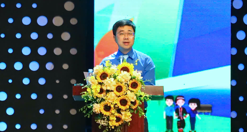 Đồng chí Bùi Hoàng Tùng, Uỷ viên Ban thường vụ Trung ương Đoàn, Bí thư Đoàn Khối các cơ quan Trung ương phát biểu tại chương trình