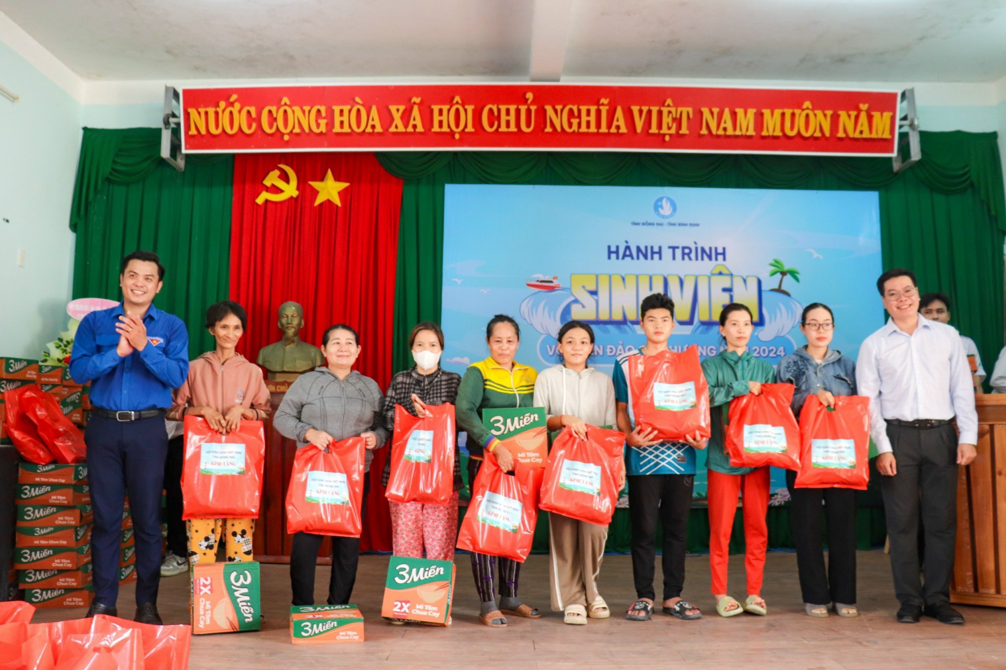 Trong khuôn khổ chương trình, Hội Sinh Viên tỉnh trao tặng 02 bộ loa di động, 02 bộ bóng bàn cho 02 đơn vị bộ đội trên xã đảo Nhơn Châu; trao tặng 100 lá cờ Tổ quốc, 100 phần quà nhu yếu phẩm, 05 tủ thuốc y tế cho người dân trên đảo; trao tặng 01 bộ loa di động cho Đoàn xã Nhơn Châu; trao tặng 800 lá cờ Tổ quốc cho Hội Sinh viên tỉnh Bình Định; thực hiện các Công trình sinh viên tại Trường TH - THCS Nhơn Châu gồm 01 khu vui chơi trị giá 30 triệu đồng, 20 suất học bổng cho học sinh khó khăn, 01 bộ trống đội,700 cuốn sách, truyện cho trường. Tổng giá trị các nguồn lực gần 150 triệu đồng.