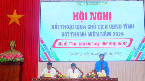 Ngày 01/10/2024, tại Hội trường Ủy ban nhân dân tỉnh Hậu Giang, Tỉnh đoàn phối hợp với Sở Nội vụ tham mưu cho UBND tỉnh tổ chức Hội nghị đối thoại giữa đồng chí Chủ tịch Ủy ban nhân dân tỉnh với Thanh niên năm 2024, với chủ đề: “Thanh niên Hậu Giang - Khát vọng Tuổi 20”.