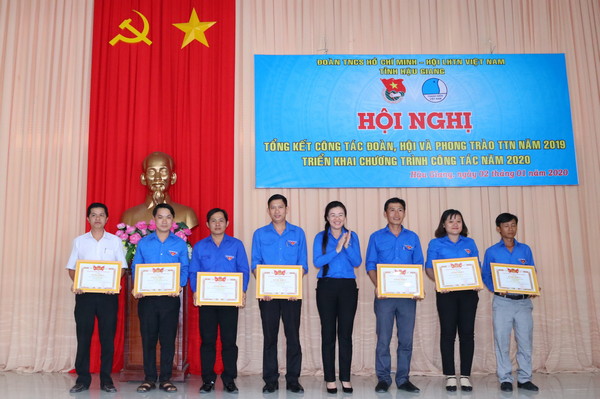 Dịp này, Ban Tổ chức Hội nghị đã trao bằng khen Trung ương Đoàn cho 20 tập thể và 12 cá nhân; bằng khen của BCH Tỉnh đoàn cho 17 tập thể và 14 cá nhân; giấy khen của Ủy ban Hội tỉnh cho 14 tập thể và 15 cá nhân. Đồng thời, Tỉnh đoàn đã tặng cờ thi đua trong năm 2019 cho 08 đơn vị và cờ xuất sắc và 03 năm liền cho 03 đơn vị, trong đó Tỉnh đoàn đã trao cờ dẫn đầu hai khối thi đua năm 2019 cho Huyện đoàn Long Mỹ và Đoàn Thanh niên Công an tỉnh; Ủy ban Hội tỉnh trao cờ dẫn đầu thi đua năm 2019 cho đơn vị Ủy ban Hội thị xã Ngã Bảy. Đặc biệt Đoàn bộ đã vinh dự được Trung ương đoàn tặng cờ xuất sắc trong công tác Đoàn và phong trào thanh thiếu nhi năm 2019.