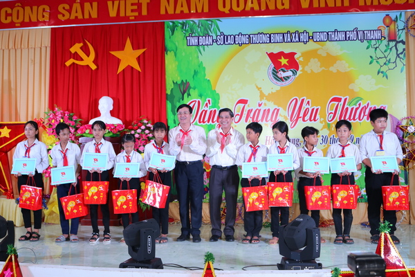 Dịp này, Ban Tổ chức chương trình đã trao 90 suất học bổng “Thắp sáng ước mơ Tuổi trẻ Hậu Giang” cho các em thiếu nhi có hoàn cảnh khó khăn trong toàn tỉnh (mỗi suất trị giá 500.000 đồng), trong đó trao tại thành phố Vị Thanh 20 suất học bổng, 200 phần quà trung thu, 02 chiếc xe đạp và lồng đèn cho các em thiếu nhi có hoàn cảnh khó khăn vượt khó học tốt với tổng trị giá gần 80 triệu đồng. Ngoài ra, Ban Thường vụ Tỉnh đoàn còn phối hợp với Sở Lao động – Thương binh và Xã hội chỉ đạo các địa phương, đơn vị trong toàn tỉnh tổ chức Tết Trung thu cho các em thiếu nhi có hoàn cảnh khó khăn từ ngày 29/9 đến 01/10/2020 (nhằm ngày 13 đến 15/8 âm lịch).