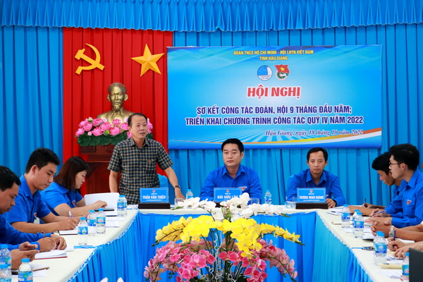 Phát biểu kết luận Hội nghị, đồng chí Bùi Hữu Lộc – Bí thư Tỉnh đoàn, Chủ tịch Hội đồng Đội tỉnh đề nghị các cấp bộ Đoàn, Hội cần tiếp tục tổ chức tuyên truyền về thành công và kết quả của Đại hội đại biểu Đoàn TNCS Hồ Chí Minh tỉnh Hậu Giang lần thứ XI, nhiệm kỳ 2022-2027, tổ chức các hoạt động thi đua chào mừng Đại hội Đoàn toàn quốc lần thứ XII, nhất là tổ chức sinh hoạt chính trị, tuyên truyền về Nghị quyết Đại hội đại biểu Đoàn TNCS Hồ Chí Minh tỉnh Hậu Giang lần thứ XI, nhiệm kỳ 2022-2027; tăng cường các hoạt động bồi dưỡng, rèn luyện tư tưởng chính trị, đạo đức, lối sống cho cán bộ Đoàn, đoàn viên thanh niên; đảm nhận thực hiện các công trình, phần việc thanh niên gắn với nhiệm vụ phát triển kinh tế - xã hội của địa phương, đơn vị chào mừng Đại hội Đoàn các cấp tiến tới Đại hội Đoàn toàn quốc lần thứ XII, trong đó chú trọng thực hiện các công trình, phần việc ứng dụng công nghệ mới, chuyển đổi số; triển khai thực hiện đồng bộ việc sử dụng phần mềm quản lý đoàn viên trên Ứng dụng Thanh niên Việt Nam,... ngoài ra, đồng chí còn đề nghị Ban Thường vụ các Huyện, Thị, Thành đoàn và Đoàn trực thuộc hoàn thành tốt Bộ Tiêu chí thi đua năm 2022 gửi về tỉnh đúng thời gian; giao các ban Chuyên môn Tỉnh đoàn tham mưu 3 Đề án thực hiện 3 nhiệm vụ đột phá được đề ra trong nhiệm kỳ 2022-2027.