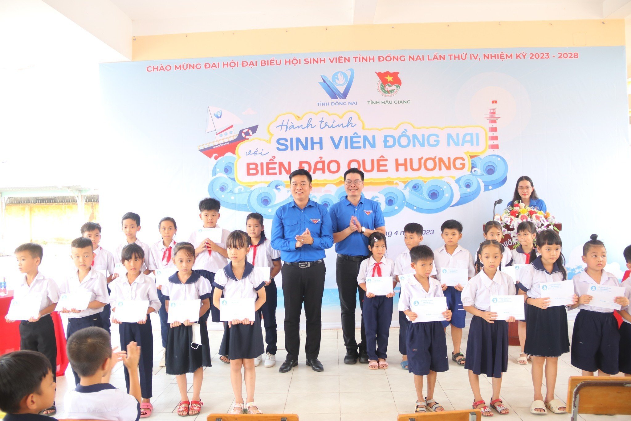 Nhân dịp, Chương trình trao học bổng và dụng cụ học tập, tủ sách “Ươm mầm tri thức” và khu vui chơi cho thiếu nhi trên địa bàn thành phố Ngã Bảy năm chuỗi các hoạt động thuộc Chương trình Hành trình “Sinh viên với biển đảo quê hương” năm 2023 do Ban Thư ký Hội Sinh viên tỉnh Đồng Nai tổ chức. Trong Chương trình, Ban Thư ký Hội Sinh viên tỉnh Đồng Nai đã trao tặng 01 Khu vui chơi cho thiếu nhi cho Thành đoàn Ngã Bảy; 20 suất học bổng, 20 bộ dụng cụ học tập, 250 cái khăn quàng, 01 tủ sách “Ươm mầm tri thức” cho học sinh Trường Tiểu học Lái Hiếu, thành phố Ngã Bảy, tổng trị giá là 65.250.000 đồng.