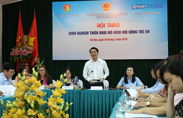 Sáng 30/7, tại Hà Nội, Hội đồng Đội Trung ương phối hơp với Ủy ban Văn hóa, giáo dục, thanh niên, thiếu niên và nhi đồng của Quốc hội, tổ chức Plan International Việt Nam tổ chức hội thảo kinh nghiệm triển khai mô hình hội đồng trẻ em.
