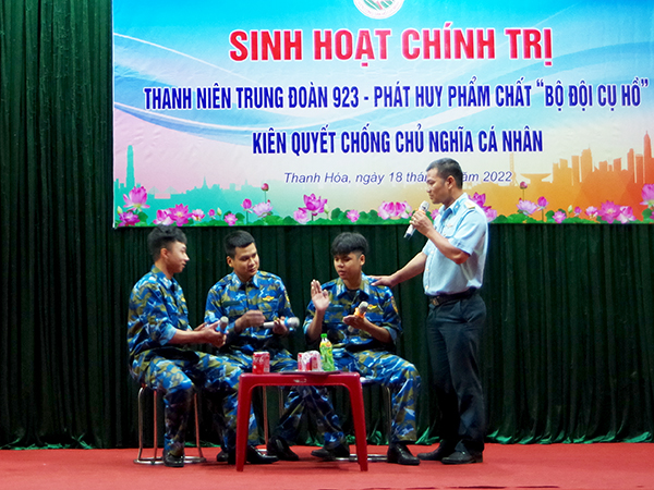 Quán thiệt và Thực hiện Kế hoạch số 57/KH-CT ngày 10/01/2022 của Tổng cục Chính trị về đẩy mạnh học tập và làm theo tư tưởng, đạo đức, phong cách Hồ Chí Minh và Cuộc vận động phát huy truyền thống, cống hiến tài năng, xứng danh “Bộ đội Cụ Hồ” thời kỳ mới trong Đảng bộ Quân đội và toàn quân năm 2022; Kế hoạch số 407 ngày 30/7/2021 của Ban Bí thư Trung ương Đoàn thực hiện Kết luận số 01 của Bộ Chính trị về tiếp tục thực hiện Chỉ thị số 05-CT/TW ngày 15/5/2016 của Bộ Chính trị khóa XII (Kết luận số 01) giai đoạn 2021 - 2026, thời gian qua, các đoàn cơ sở trong toàn quân đã đồng loạt triển khai đợt sinh hoạt chính trị với chủ đề: “Thanh niên Quân đội - Phát huy phẩm chất “Bộ đội Cụ Hồ”, kiên quyết chống chủ nghĩa cá nhân” đây cũng là hoạt động thiết thực kỷ niệm 132 năm Ngày sinh Chủ tịch Hồ Chí Minh (19/5/1890 - 19/5/2022) của tuổi trẻ các cơ quan, đơn vị.