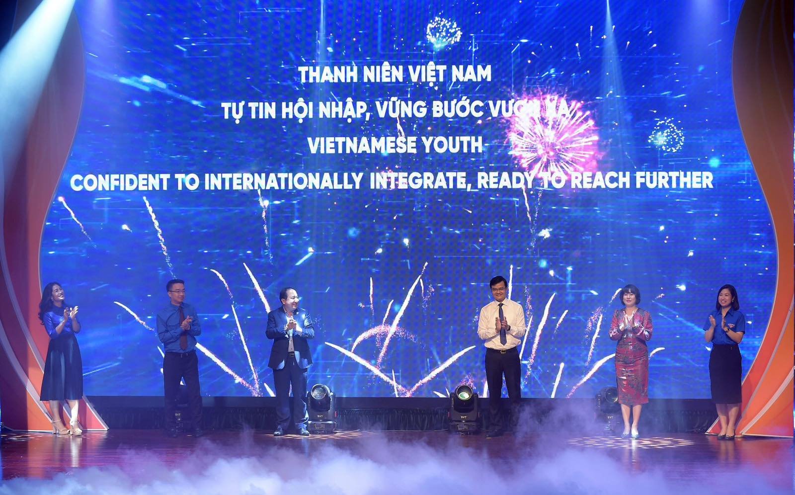 Đồng chí Bùi Quang Huy- Ủy viên dự khuyết Trung ương Đảng, Bí thư thứ nhất Trung ương Đoàn cùng các đồng chí lãnh đạo tham gia Nghi thức khởi đầu các hoạt động nâng cao năng lực tiếng Anh, ngoại ngữ và hội nhập quốc tế tại đêm tổng kết Gala “Thanh niên Việt Nam vững bước hội nhập” diễn ra ngày 22/11/2022