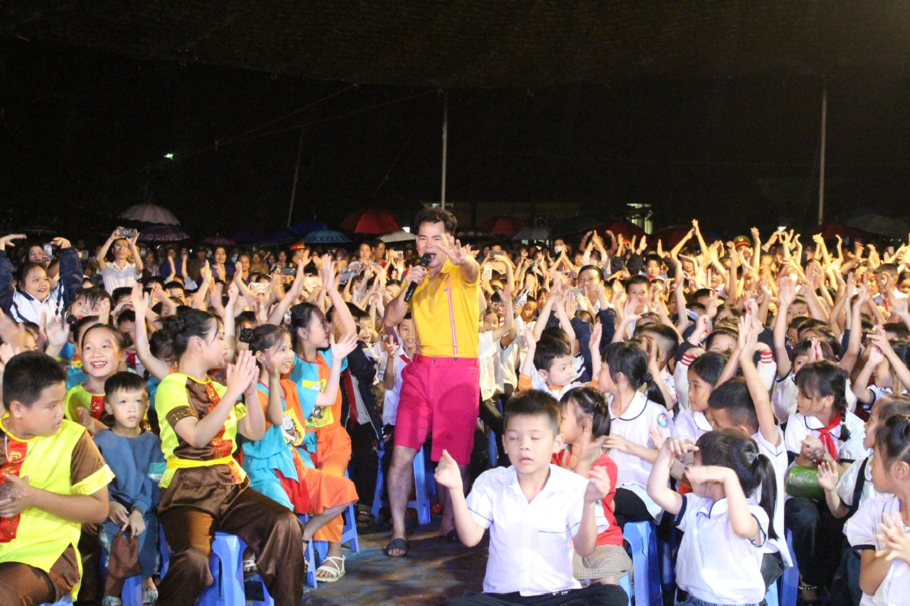 Tại chương trình, các em đã được thưởng thức nhiều tiết mục văn nghệ đặc sắc, hoạt cảnh chú Cuội, chị Hằng, giao lưu cùng Nghệ sĩ ưu tú Xuân Bắc, Nghệ sĩ Nhân dân Tự Long... trong không khí vui tươi, rộn ràng, tràn ngập tiếng cười.