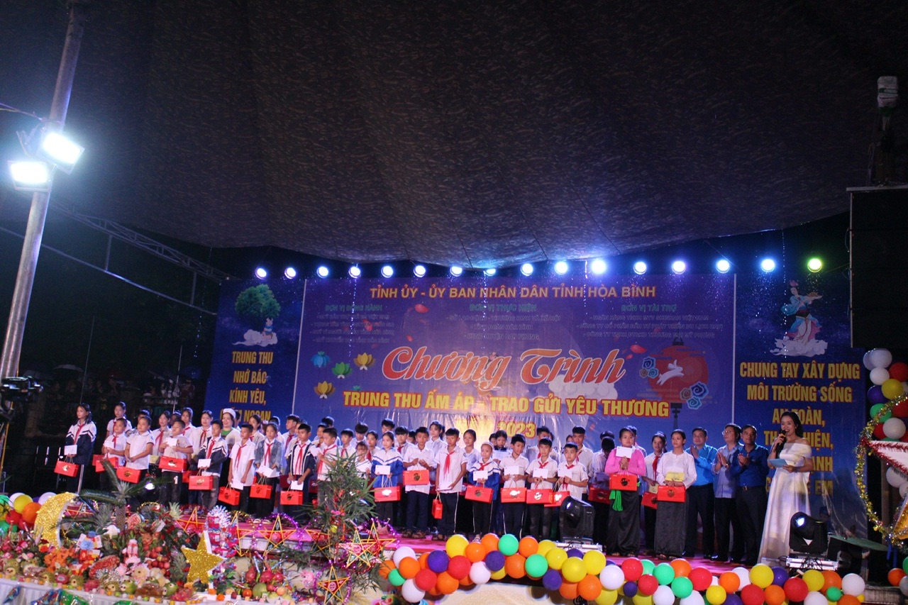 ĐTN: Tối 14/9, tại sân vận động xã Dũng Phong, huyện Cao Phong, Tỉnh ủy, Uỷ ban nhân dân tỉnh Hòa Bình tổ chức chương trình "Trung thu ấm áp - Trao gửi yêu thương” năm 2023.