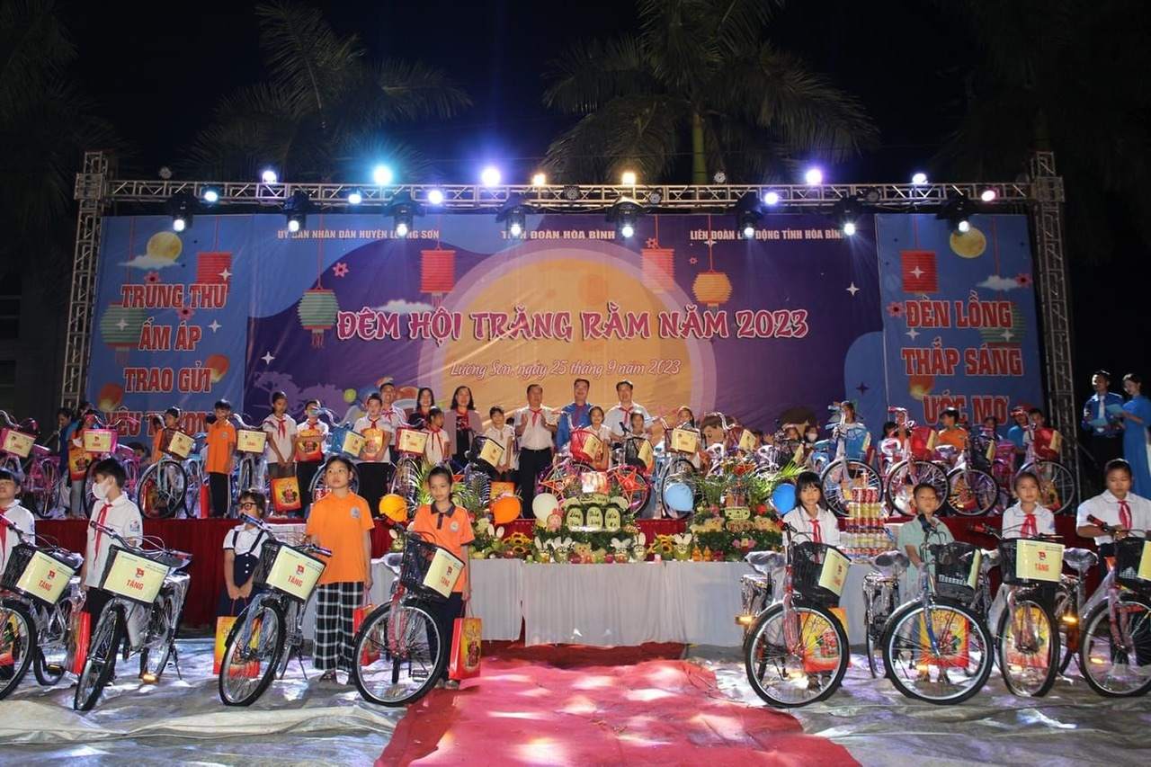 Nhân dịp này, Trung ương Đoàn, tỉnh Hòa Bình, huyện Lương Sơn đã trao tặng 90 xe đạp, 190 suất học bổng (mỗi suất trị giá 500 nghìn đồng), 1.100 cặp bánh trung thu cho trẻ em có hoàn cảnh đặc biệt, khó khăn và tặng nhiều phần quà, đồ dùng học tập cho học sinh… Trị giá các phần quà và học bổng trên 400 triệu đồng.