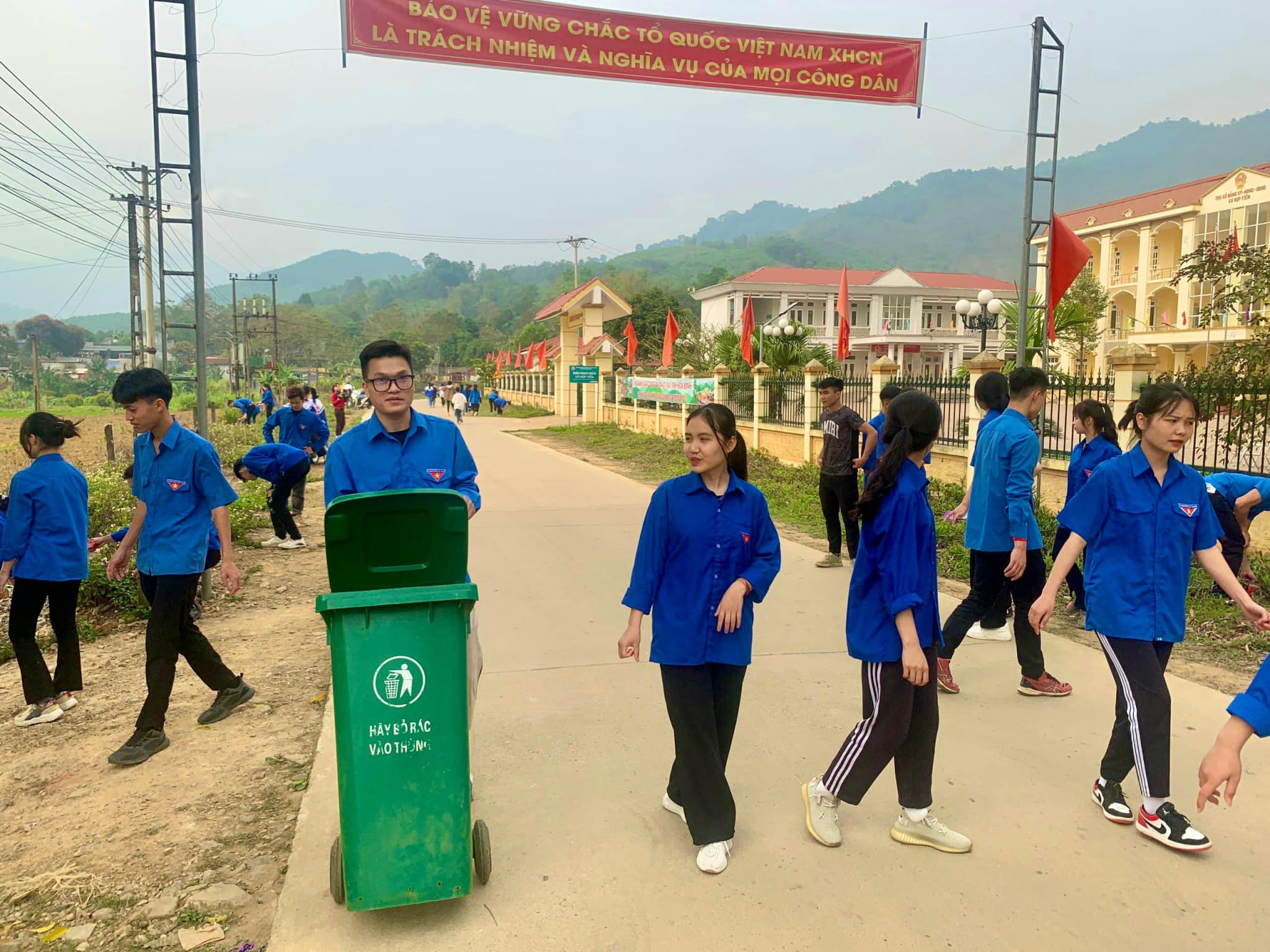 Đoàn viên thanh niên tham gia dọn dẹp vệ sinh môi trường.