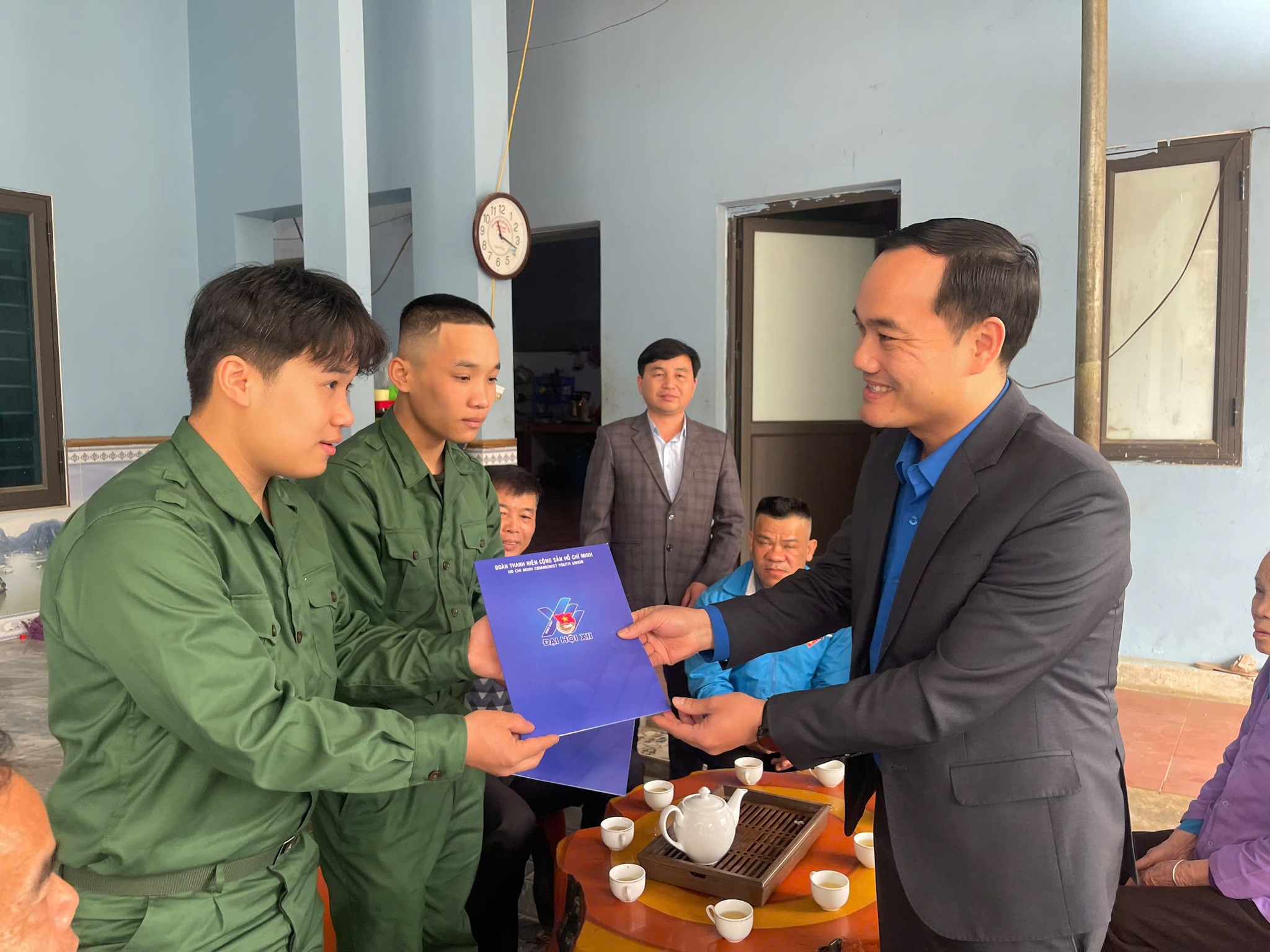 Tại gia đình các tân binh, anh chị trong đoàn công tác đã ân cần thăm hỏi cuộc sống hàng ngày của gia đình và tặng quà, động viên các tân binh trước khi lên đường nhập ngũ; đồng thời mong muốn các tân binh luôn cố gắng tu dưỡng, rèn luyện, phấn đấu, khắc phục khó khăn, chấp hành nghiêm túc kỷ luật, hoàn thành tốt nhiệm vụ được giao, phát huy sức trẻ; góp phần xung kích và bảo vệ Tổ quốc, xứng đáng với truyền thống quê hương, đất nước, sự tin tưởng của gia đình và địa phương. Đồng thời khẳng định Ban Thường vụ tỉnh Đoàn luôn dành sự quan tâm đặc biệt đến các công dân là đoàn viên nhập ngũ.