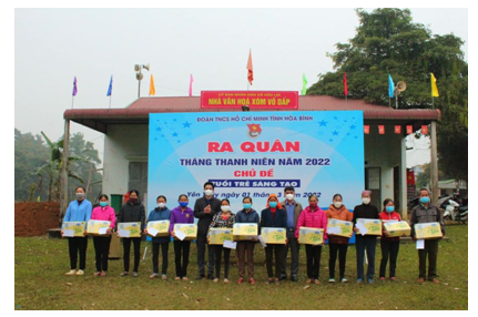 Tỉnh Đoàn phối hợp với Đoàn Thanh niên công an tỉnh, huyện Đoàn Yên Thủy, Đoàn khối các cơ quan tỉnh Hòa Bình. Công ty TNHH Tài Nguyên Môi trường Quảng Phúc huyện Yên Thủy hỗ trợ Nhà nhân ái 10 tấn xi măng, 25 triệu đồng cho gia đình anh Quách Văn Thi – xóm Liên Hợp – Xã Hữu Lợi – huyện Yên Thủy, trao tặng 5.000 cây giống và hỗ trợ 5 triệu đồng cho hoạt động tết trồng cây “Đời đời đời nhớ ơn Bác Hồ” xuân Nhâm dần 2022.