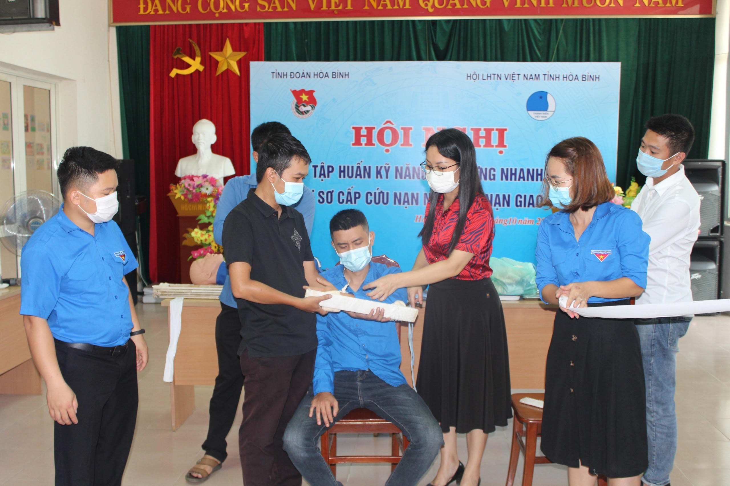 Các tình nguyện viên được học kỹ năng sơ cấp cứu nạn nhân tai nạn giao thông.