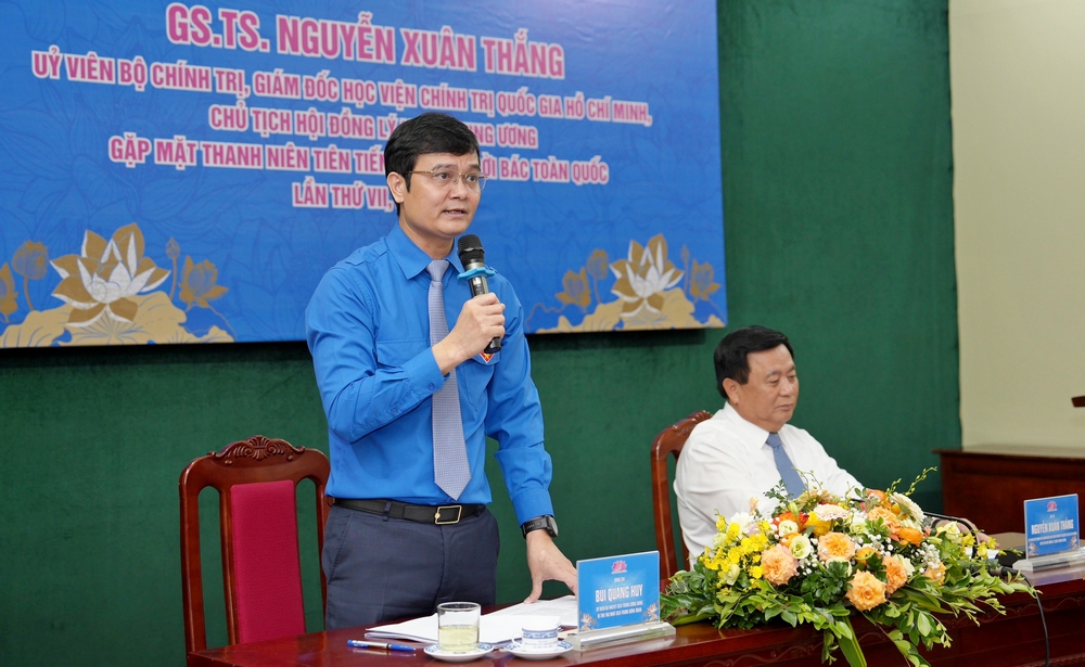 "Làm sao để định vị được đất nước Việt Nam trên bản đồ thế giới với những từ khóa mà GS.TS Nguyễn Xuân Thắng vừa đưa ra, gợi mở đối với quá trình phát triển đất nước trong thời gian tới, đó là "giàu mạnh, dân chủ, phồn vinh, văn minh, hạnh phúc". Đây là nhiệm vụ to lớn của toàn Đảng, toàn dân, trong đó có vai trò quan trọng của thanh niên", đồng chí Bùi Quang Huy nói.