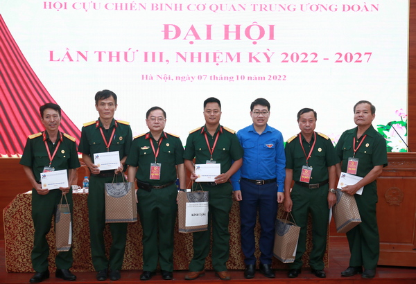 Đồng chí Hoàng Minh Tuấn, Chủ tịch Hội Cựu chiến binh cơ quan TƯ Đoàn nhiệm kỳ 2022-2027 trao tặng Bằng khen cho Chi hội cựu Chiến binh và danh hiệu Cựu chiến binh cho các tập thể, cá nhân tại Đại hội
