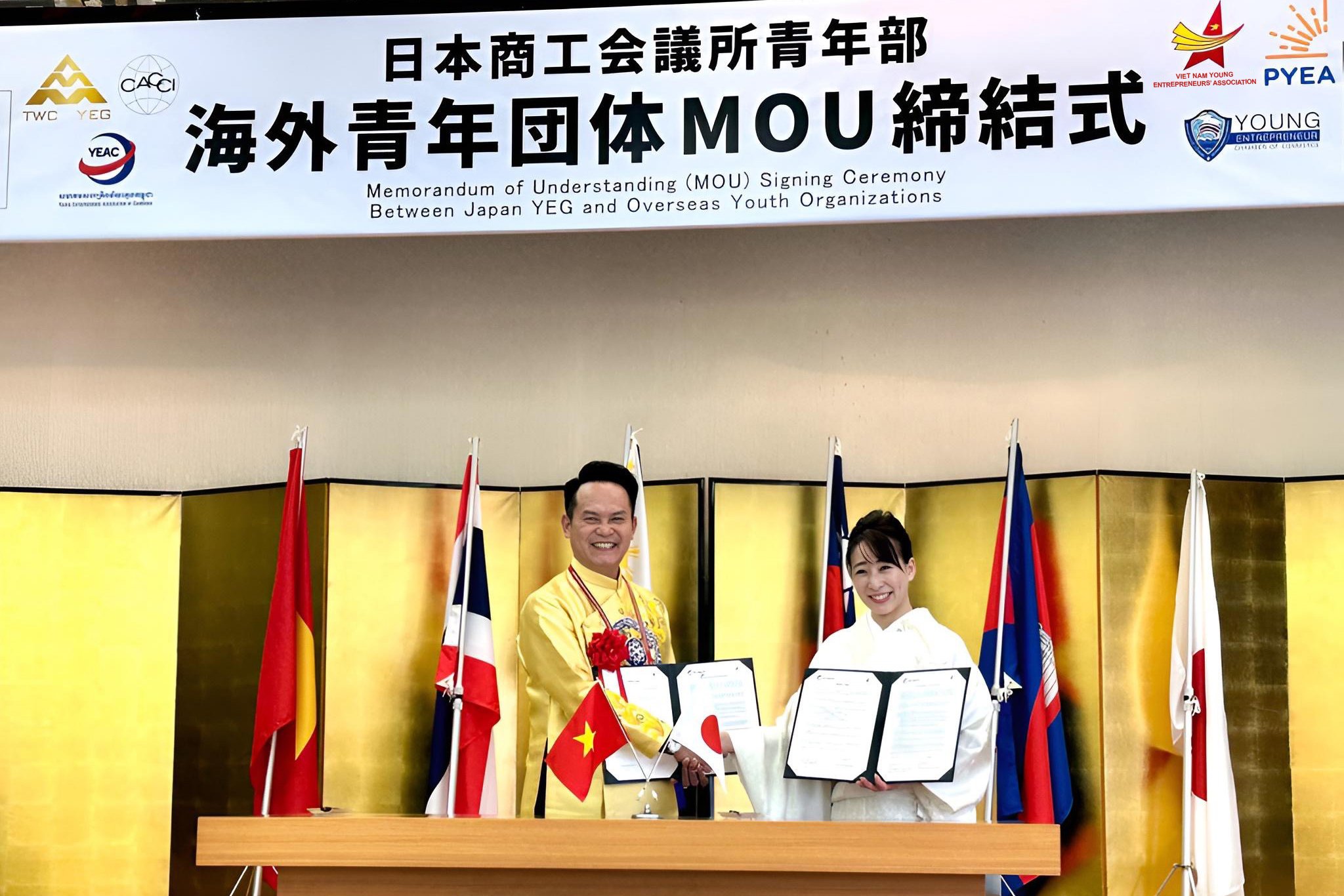 Phát biểu tại lễ ký kết, anh Đặng Hồng Anh, Chủ tịch Hội Doanh nhân trẻ Việt Nam đánh giá cao ý nghĩa của Hội nghị; đồng thời mong muốn mối quan hệ hợp tác giữa hai Hội Doanh nhân trẻ Việt Nam – Nhật Bản nói riêng; Nhật Bản – ASEAN nói chung sẽ tiếp tục phát triển mạnh mẽ trong thời gian tới, góp phần mở ra nhiều cơ hội hợp tác phát triển trong các lĩnh vực: Xuất nhập khẩu, logistics, nông sản, công nghệ thông tin, đổi mới sáng tạo, ESG (Môi trường – Xã hội – Quản trị)...