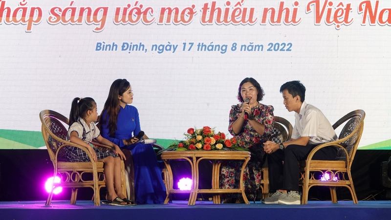 Trong chương trình, các đại biểu và thiếu nhi tham dự đã gặp gỡ và trò chuyện với 03 khách mời là Thạc sĩ Đào Thì Hồng, Giảng viên Trường Cao đẳng Kỹ thuật Công nghệ Quy Nhơn, tỉnh Bình Định; bạn Bùi Lê Hoàng, Lớp 11 chuyên Hoá, trường THPT Chuyên Lê Quý Đôn, tỉnh Bình Định và em Trương Thị Ánh Tuyết, lớp 3B trường Tiểu học Ân Tường Tây, huyện Hoài Ân, tỉnh Bình Định. Những chia sẻ của các khách mời sẽ giúp các em thiếu nhi có thêm động lực phấn đấu, thắp sáng ước mơ và định hướng cho các em trong việc xác định mục tiêu, lý tưởng sống, xây dựng hoài bão, ước mơ sống cho mình.