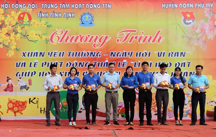 Cũng trong dịp này, Hội đồng Đội tỉnh đã trao 100 suất quà, với tổng trị giá 30.000.000 đồng cho các em thiếu nhi có hoàn cảnh khó khăn tại Thị xã An Nhơn và huyện Tây Sơn.
