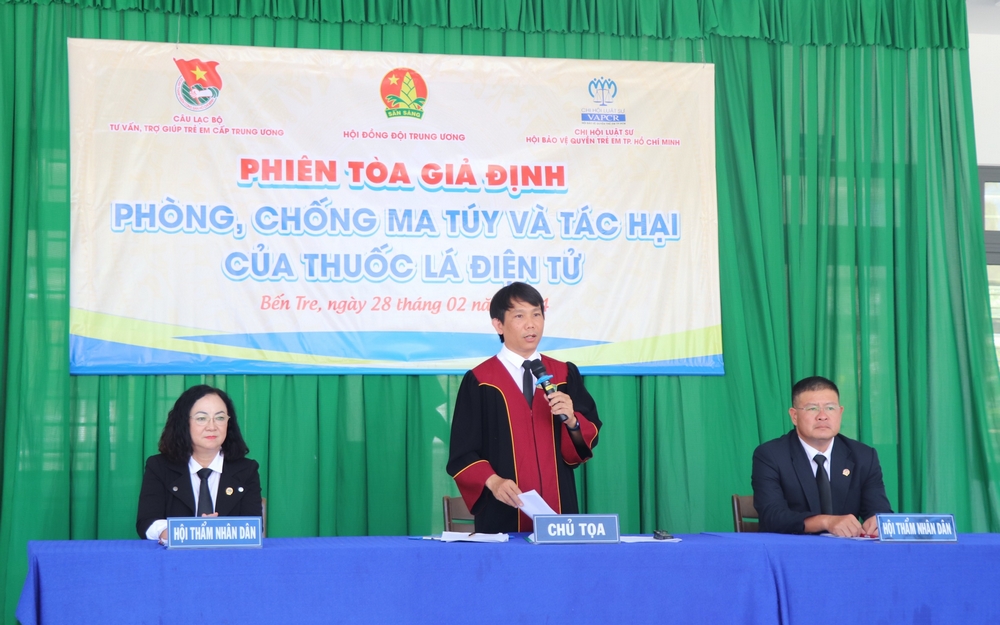 Dịp này, Hội đồng Đội Trung ương, CLB Tư vấn, trợ giúp trẻ em cấp Trung ương, Chi hội Luật sư Hội Bảo vệ Quyền Trẻ em Thành phố Hồ Chí Minh tổ chức chương trình phiên tòa giả định phòng, chống ma tuý và tác hại của thuốc lá điện tử tại trường Trung học cơ sở Châu Hòa với mục đích nâng cao nhận thức, ý thức pháp luật cho giáo viên, học sinh; cung cấp kiến thức, kỹ năng để phát hiện biểu hiện thất thường của học sinh, phòng ngừa sớm các hành vi phạm tội… nhất là trong giai đoạn hiện nay, khi ma túy, thuốc lá điện tử đã và đang len lỏi vào môi trường học đường, gây ra nhiều hệ lụy nghiêm trọng cho xã hội.