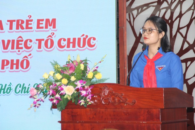 Phó Bí thư Thành Đoàn, Chủ tịch Hội đồng Đội TPHCM Trần Thu Hà nêu ý kiến tại hội nghị