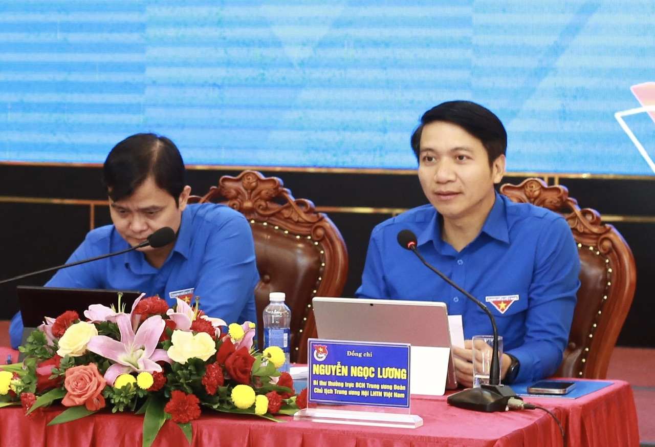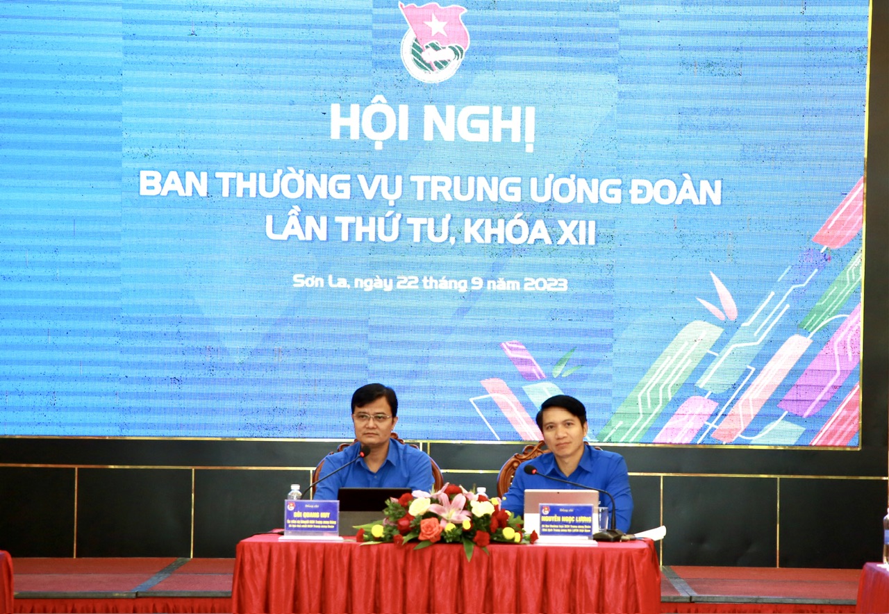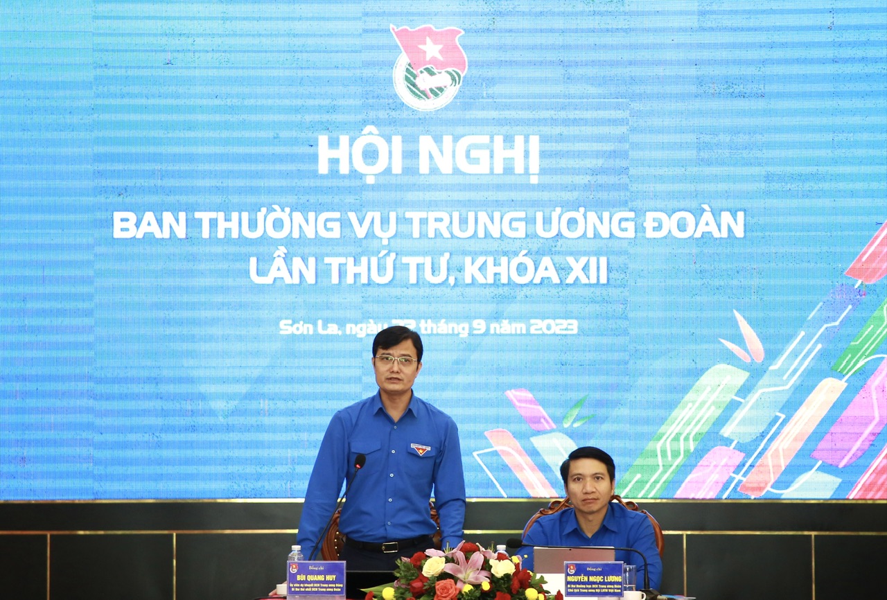 Đồng chí Bùi Quang Huy, Bí thư thứ nhất Trung ương Đoàn, đồng chí Nguyễn Ngọc Lương, Bí thư thường trực Trung ương Đoàn chủ trì Hội nghị