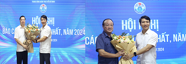 Đồng chí Nguyễn Ngọc Lương, Bí thư thường trực TƯ Đoàn tặng hoa cho các báo viên tại Hội nghị