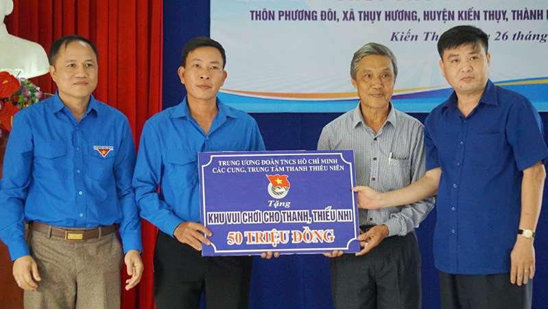 Trao tặng kinh phí 50 triệu đồng và dự Lễ khánh thành Khu vui chơi giải trí dành cho thanh thiếu niên tại Nhà văn hóa thôn Phương Đôi, xã Thụy Hương, huyện Kiến Thụy