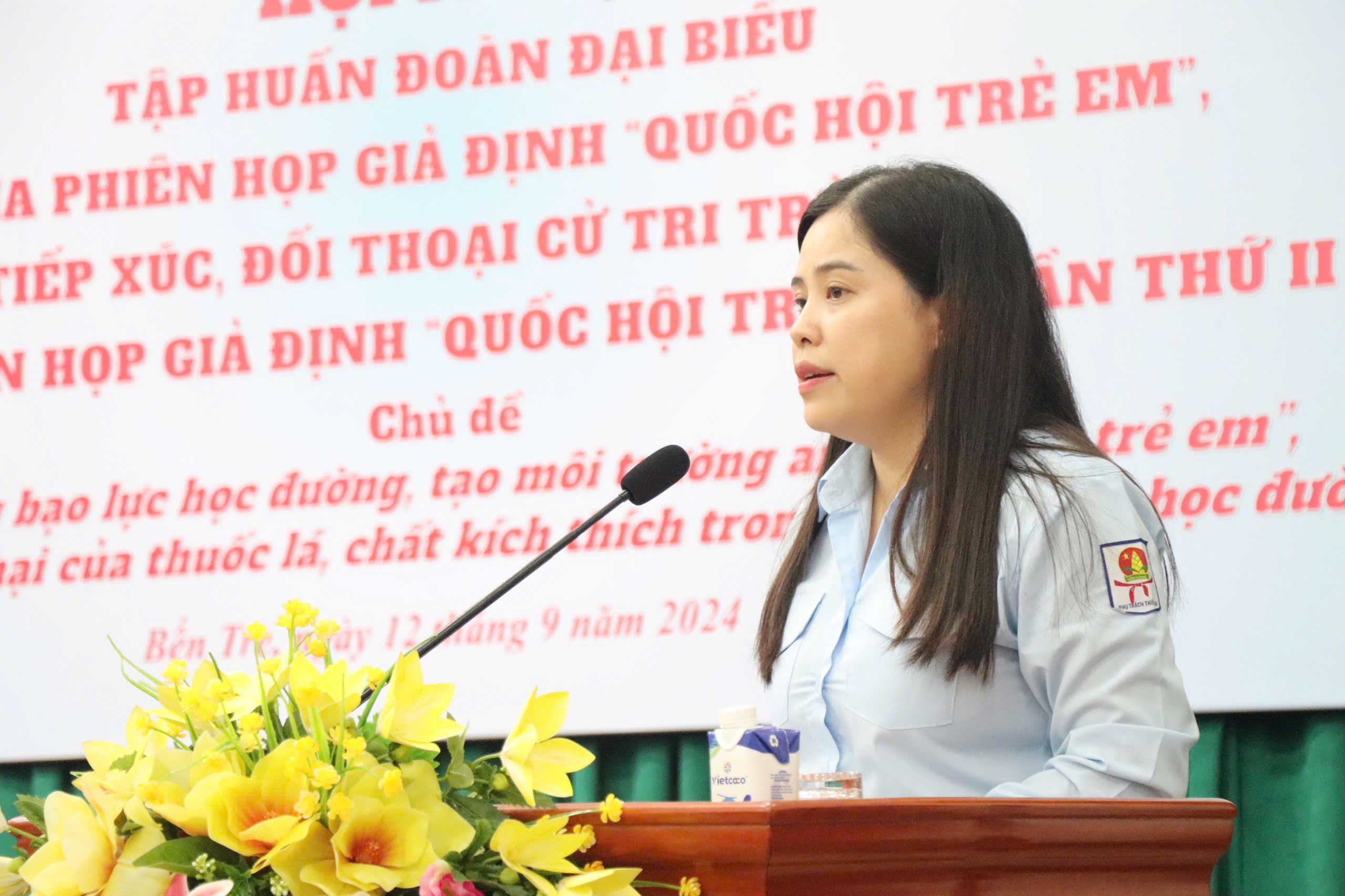 Tham dự có đồng chí Nguyễn Thị Yến Nhi - Tỉnh ủy viên, Phó trưởng Đoàn chuyên trách Đoàn Đại biểu Quốc hội tỉnh; đồng chí Đặng Thị Phượng - Phó Chủ tịch Ủy ban Mặt trận Tổ quốc Việt Nam tỉnh; đồng chí Nguyễn Hồ Ái Thi – Phó Chánh Văn phòng Đoàn Đại biểu Quốc hội, Hội đồng nhân tỉnh; đồng chí Hồ Thị Tuyến Minh – Phó Trưởng Ban Văn hóa – Xã hội, Hội đồng nhân dân tỉnh; đồng chí Võ Tuấn Thông - Phó Bí thư Thường trực, Chủ nhiệm Ủy ban Kiểm tra Tỉnh đoàn; đồng chí Võ Thị Phương Diệu – Phó Bí thư Tỉnh đoàn, Chủ tịch Hội đồng Đội tỉnh; đồng chí Võ Văn Bé Hai – Phó Giám đốc Sở Giáo dục và Đào tạo; đồng chí Dương Thị Như Ngọc - Phó Giám đốc Sở Y tế; đồng chí Trịnh Thị Thanh Bình - Phó Chủ tịch Hội Nạn nhân chất độc da cam/Dioxin - Bảo vệ Quyền trẻ em tỉnh; đại biểu đại diện Ban Dân vận Tỉnh ủy, Ban Giám đốc Công an tỉnh, Hội Liên hiệp Phụ nữ tỉnh,… 07 đại biểu thuộc Đoàn Đại biểu trẻ em tỉnh tham gia phiên họp giả định “Quốc hội trẻ em”lần thứ II – năm 2024, Thường trực các Huyện, Thành đoàn cùng sự tham dự của hơn 200 đại biểu trẻ em tại điểm cầu cấp tỉnh và 08 điểm cầu cấp huyện.