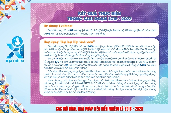 Hầu hết Đại hội đại biểu Hội Sinh viên Việt Nam các cấp đều ứng dụng mạnh mẽ chuyển đổi số. Tại Đại hội đại biểu toàn quốc Hội Sinh viên toàn quốc lần thứ XI sẽ diễn ra ngày 18,19 và 20.12.2023 cũng sẽ chuyển đổi số. Sẽ thực hiện hệ thống e-cabinet trong việc: điểm danh, xem tài liệu theo phiên, xem chương trình các phiên, biểu quyết các nội dung đại hội...