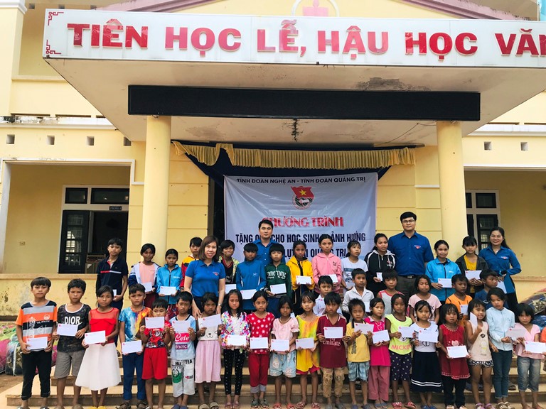Ngày 21/11, đoàn công tác của Tỉnh đoàn Nghệ An do đồng chí Phạm Văn Toàn, Phó Bí thư Tỉnh đoàn Nghệ An làm trưởng đoàn đã trao tặng quà cho học sinh vùng bị lũ lụt ở huyện miền núi Hướng Hóa, Quảng Trị.