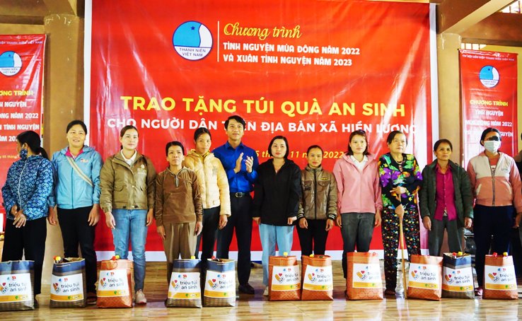 Đồng chí Nguyễn Ngọc Lương, Bí thư Thường trực BCH Trung ương Đoàn TNCS Hồ Chí Minh, Chủ tịch Trung ương Hội LHTN Việt Nam trao tặng 200 túi quà an sinh cho bà con nhân dân có hoàn cảnh khó khăn tại xã Hiền Lương