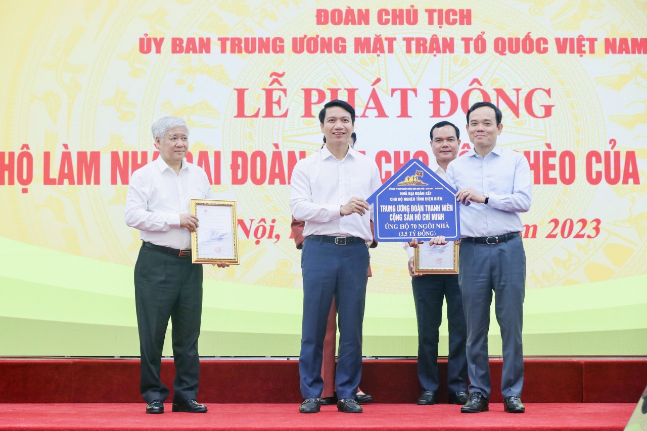 Đồng chí Nguyễn Ngọc Lương, Bí thư thường trực Trung ương Đoàn, Chủ tịch Hội LHTN Việt Nam đã trao ủng hộ 70 ngôi nhà đại đoàn kết trị giá 3,5 tỷ đồng cho hộ nghèo tỉnh Điện Biên.