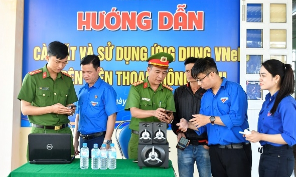 Đoàn viên thanh niên triển khai tuyên truyền, hướng dẫn bà con nhân dân cài đặt và sử dụng ứng dụng Định danh điện tử (VNeID).