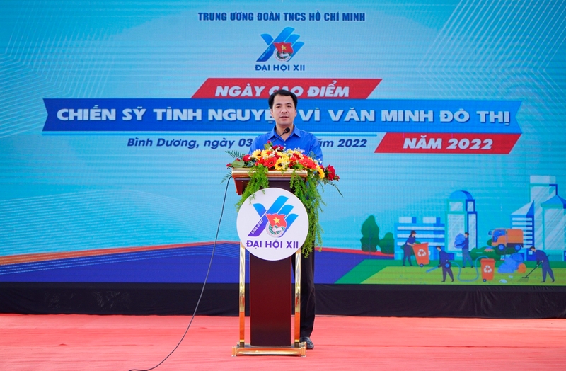 Bí thư T.Ư Đoàn Ngô Văn Cương phát biểu phát động Ngày cao điểm “Chiến sỹ tình nguyện vì văn minh đô thị” năm 2022
