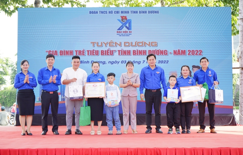 Cũng tại Chương trình, Ban Thường vụ Tỉnh đoàn trao giải thưởng cho 05 Gia đình trẻ tiêu biểu tỉnh Bình Dương năm 2022. Đây là những gia đình trẻcó thành tích xuất sắc trong công tác chuyên môn, tích cực tham gia phong trào Đoàn, Hội và là tấm gương trong việc nuôi dạy con cái và xây dựng gia đình ấm no, hạnh phúc tại địa phương, đơn vị.