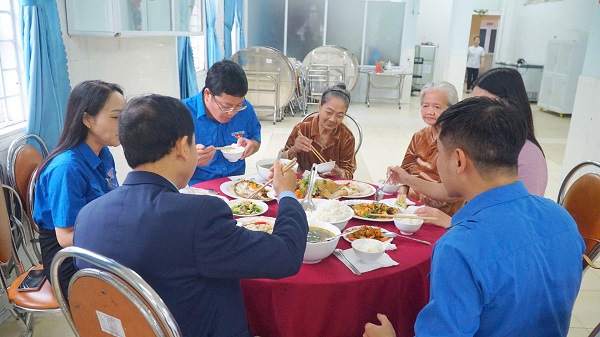 Bên cạnh đó, các mẹ, các bác và các bạn đoàn viên, thanh niên đã cùng nhau trò chuyện, dùng “Bữa cơm tri ân” ấm cúng tại Trung tâm.