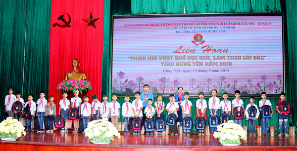 Bên cạnh đó, Hội đồng Đội tỉnh đã tuyên dương, tặng quà động viên 50 gương thiếu nhi vượt khó học giỏi, làm theo lời Bác tỉnh Hưng Yên năm 2019. Tiêu biểu như các em: Nguyễn Chi Bảo, học sinh lớp 2C trường Tiểu học Văn Nhuệ (huyện Ân Thi), là học sinh hoàn thành xuất sắc các môn học, giải Nhì Trạng nhí Tiếng Việt cấp trường; em Nguyễn Trần Thiện Minh, lớp trưởng, Đội trưởng sao nhi đồng lớp 2G, trường Tiểu học Bần Yên Nhân số 1 (Thị xã Mỹ Hào), em luôn cố gắng học tập tốt và nhiệt tình tham gia các hoạt động và phong trào của đội; em Hoàng Phương Hoa, chỉ đội trưởng lớp 7A trường THCS Lê Lợi (Thành phố Hưng Yên) là học sinh chăm ngoan, học giỏi, đạt giải 3 cuộc thi “Đại sứ văn hóa đọc năm 2019” cấp tỉnh; em Phạm Quốc Nam, học sinh lớp 9B trường THCS Minh Tân (huyện Phù Cừ) là học sinh giỏi, đạt giải khuyến khích IOE cấp huyện, ViOlympic Toán Tiếng việt, môn Lý cấp huyện năm học 2018-2019, tích cực tham gia các hội thi của đội đạt giải ba cấp huyện và giải nhất cấp trường...