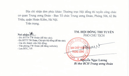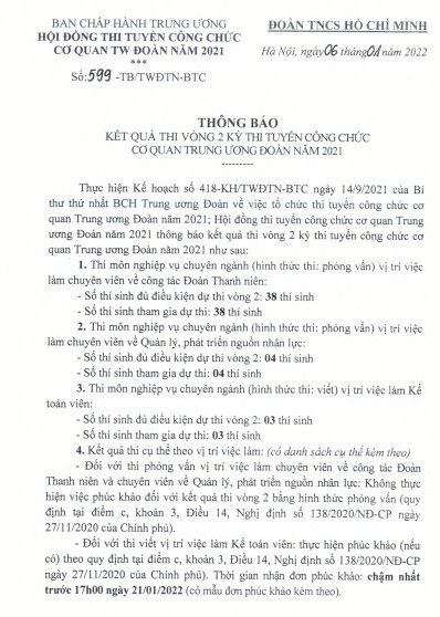 ĐTN: Hội đồng thi tuyển công chức cơ quan Trung ương Đoàn năm 2021 thông báo kết quả thi vòng 2 kỳ thi tuyển công chức cơ quan TƯ Đoàn năm 2021