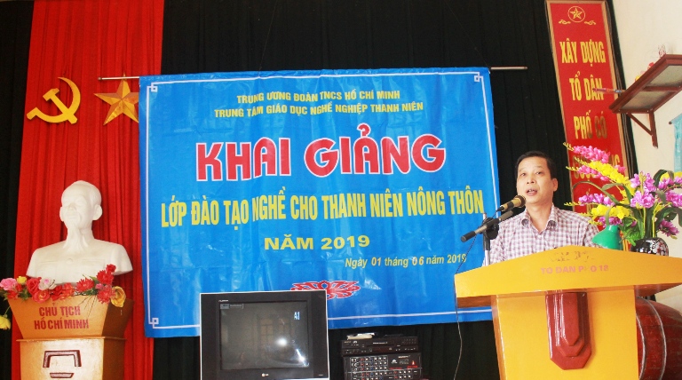 Đồng chí Vũ Đức Việt – Phó giám đốc Trung tâm Giáo dục nghề nghiệp Thanh niên phát biểu khai mạc lễ khai giảng lớp đào tạo nghề May công nghiệp, và Thêu ren tại huyện Bình Lục tỉnh Hà Nam