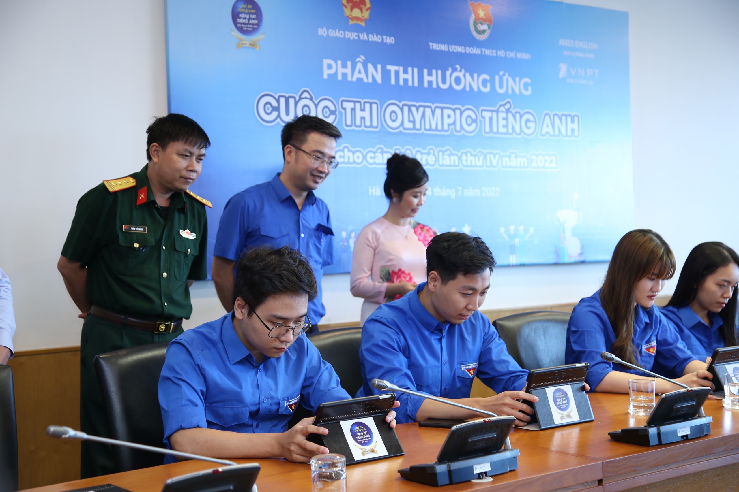Chiều 4/7, Trung ương Đoàn TNCS Hồ Chí Minh phối hợp với Bộ Giáo dục & Đào tạo tổ chức Lễ khai mạc và Phần thi hưởng ứng Cuộc thi Olympic tiếng Anh dành cho cán bộ trẻ lần thứ IV năm 2022 tại Trụ sở Tập đoàn Bưu chính Viễn thông Việt Nam.