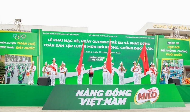 Tại buổi lễ, các đại biểu và đông đảo thiếu nhi đã theo dõi video clip về kết quả phong trào TDTT và triển khai Chương trình bơi an toàn, phòng chống đuối nước trẻ em giai đoạn 2016-202 và tiết mục đồng diễn Ngày hội Thiếu nhi vui khỏe” của 1.200 em học sinh các trường tiểu học: Chu Văn An, Lê Hồng Phong, Nguyễn Thượng Hiền thành phố Hải Phòng và Câu lạc bộ Lân Sư Rồng.