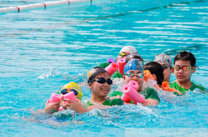 Thiếu nhi biểu diễn kỹ thuật các kiểu bơi, kỹ năng an toàn trong môi trường nước