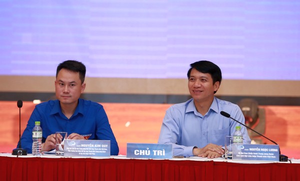 Đồng chí Nguyễn Ngọc Lương, Bí thư Trung ương Đoàn, Chủ tịch Trung ương Hội LHTN Việt Nam và đồng chí Nguyễn Kim Quy, Ủy viên BTV Trung ương Đoàn, Phó Chủ tịch Trung ương Hội LHTN Việt Nam đồng chủ trì hội nghị